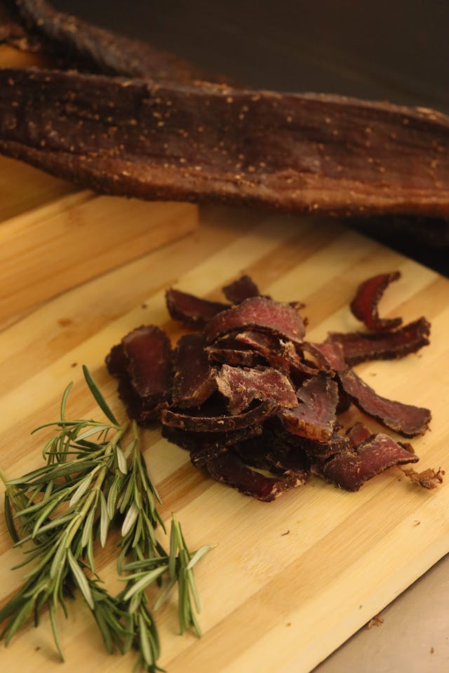 Biltong is usually free of artificial preservatives, flavourings, and colourings because it is made using natural components. When made using grass-fed beef or meat from animals that were treated well, it can also be a cleaner, more sustainable protein option than snacks that are heavily processed.